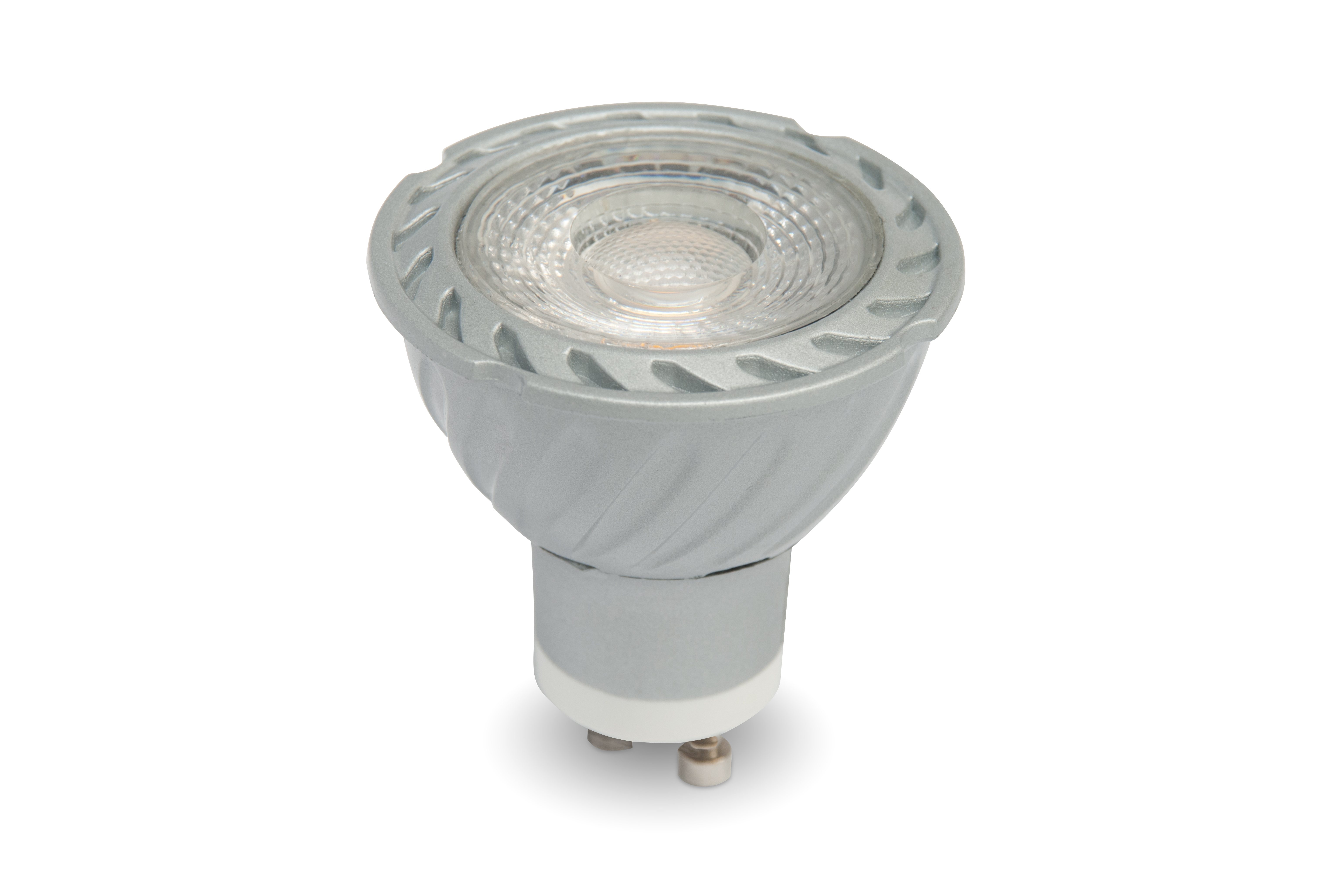 De GU10 LED-lamp is gemaakt van gegoten aluminium met een kunststof behuizing.