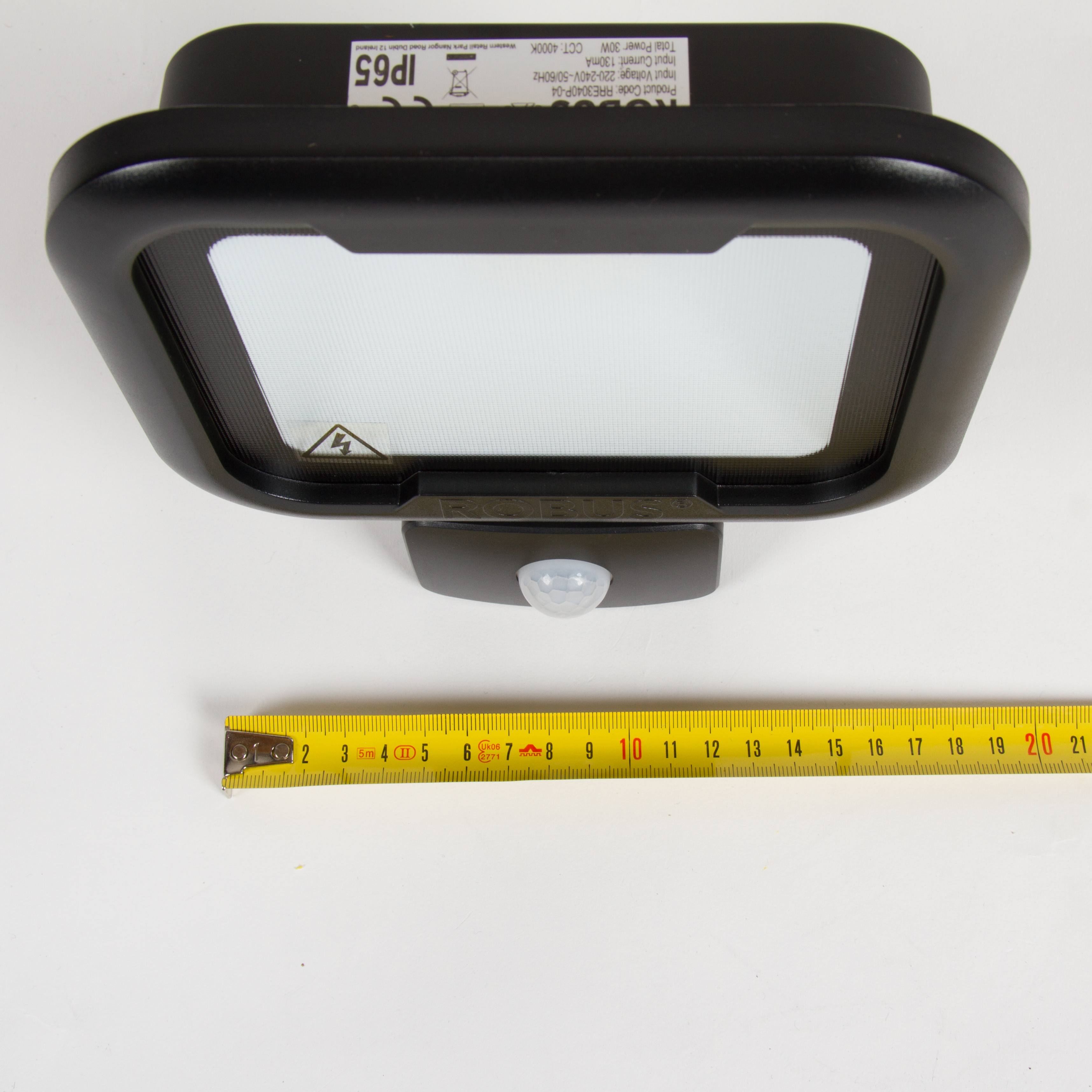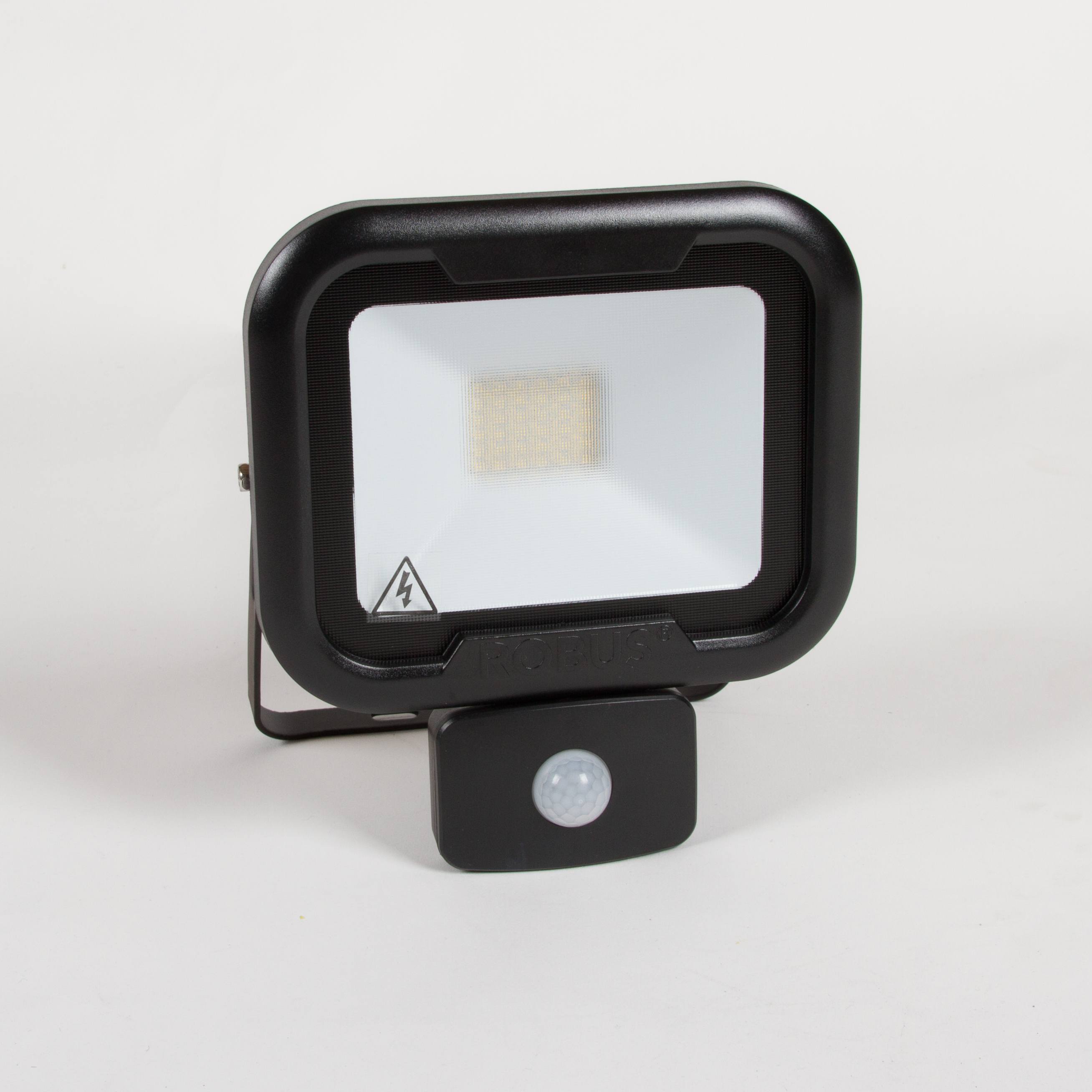 REMY LED verstraler van ROBUS met bewegingsmelder instelbaar van 10sec tot 10 min, detectiebereik 7 tot 10 meter, vervangt een gasontlading lamp van 50 Watt of 200 Watt halogeen lamp.