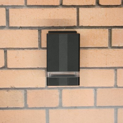 Fraai modern vormgegeven rechthoekige zwarte wandlamp van gegoten aluminium, sterk en duurzaam. UV bestendige polyester poedercoating. Rubberafdichting ter voorkoming van stof en water. Geschikt voor LED of Halogeenlamp GU10 max 35watt. Armatuur is zonder lamp.