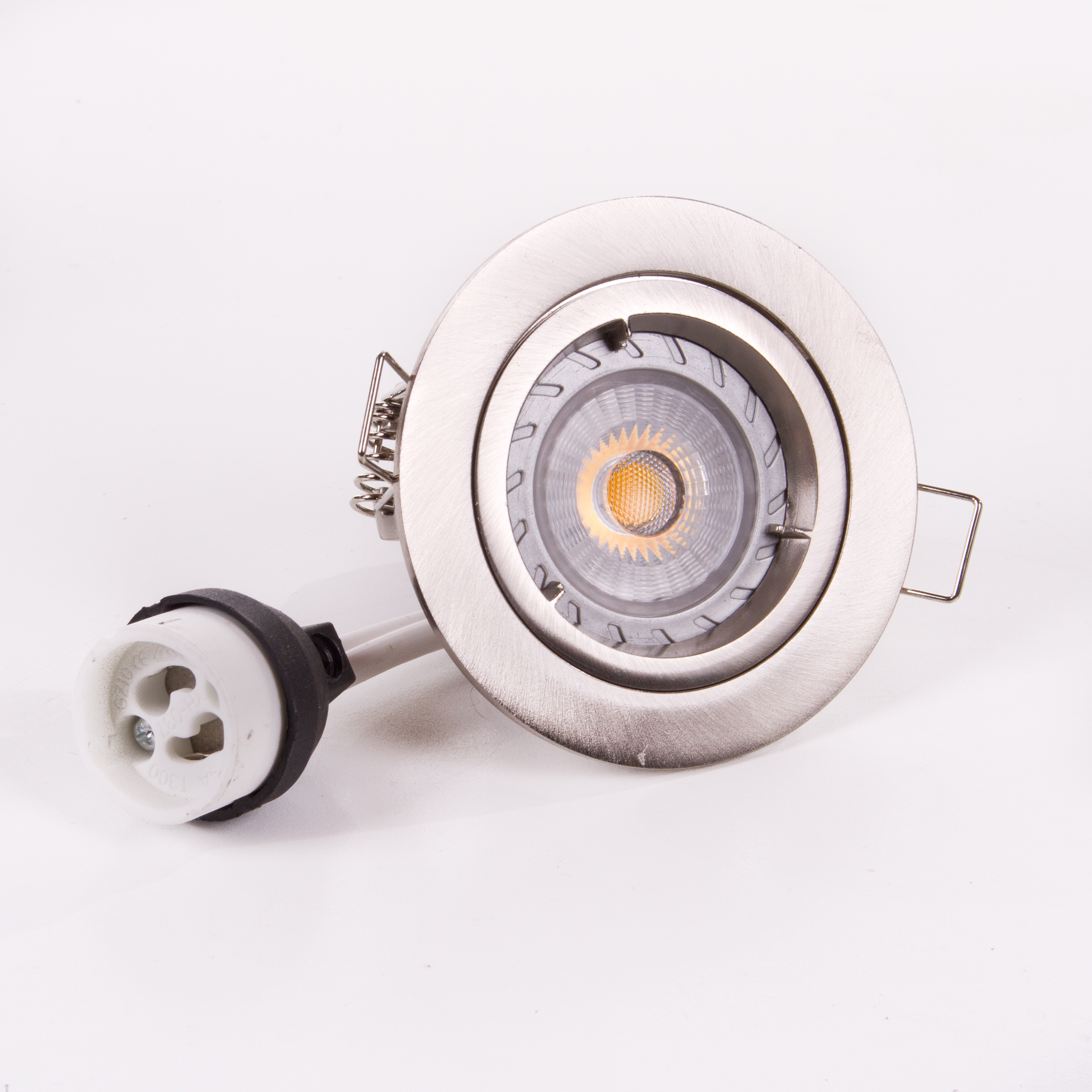 - Speciale bajonetring waar lamp in wordt geklemd dus geen veer die weg springt of waar je tegen aan kijkt.